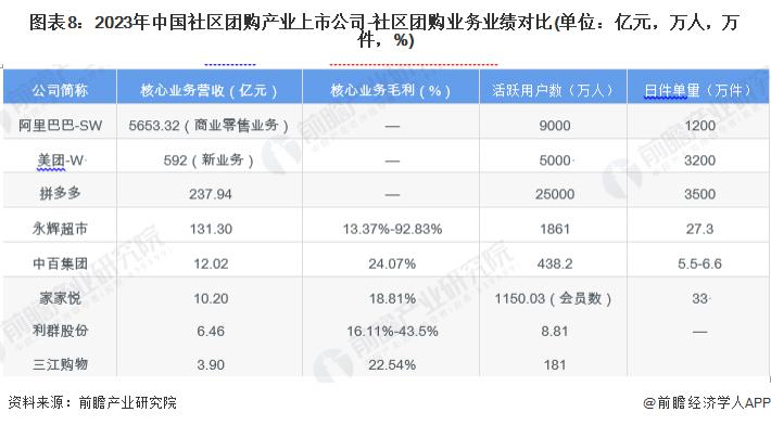 關于社區團購業務的業績情況,2023 年,阿里巴巴的核心業務營收最高,超過 5000 億元 ;中百集團的毛利水平較高,達到 24.07%; 拼多多的活躍用戶數和日件單量最多,分別達到 2.5 億人次和 3500 萬件。