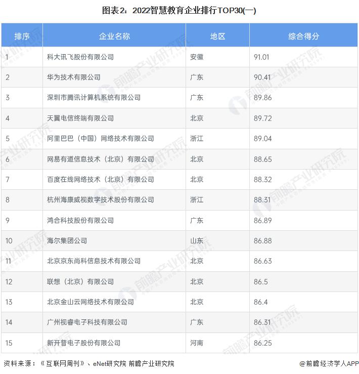 根據(jù)中科院《互聯(lián)網(wǎng)周刊》聯(lián)合德本咨詢(xún)、eNet 研究院共同發(fā)布的 2022 智慧教育企業(yè)排行,我國(guó)包括華為、騰訊、阿里巴巴在內(nèi)的多家產(chǎn)業(yè)數(shù)字化廠商入圍,其中科大訊飛拔得頭籌,成為了 2022 年我國(guó)智慧教育領(lǐng)域最有代表性的廠商。