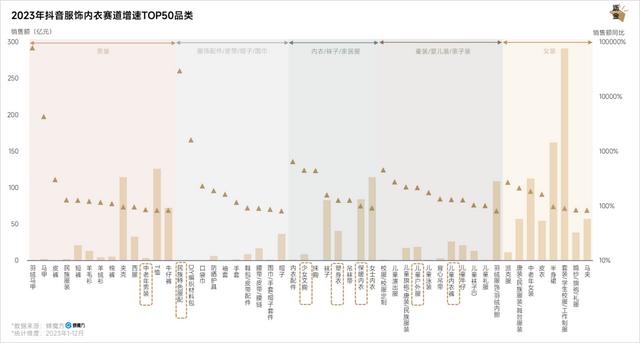 2023 年抖音服飾內衣賽道增速 TOP50 品類