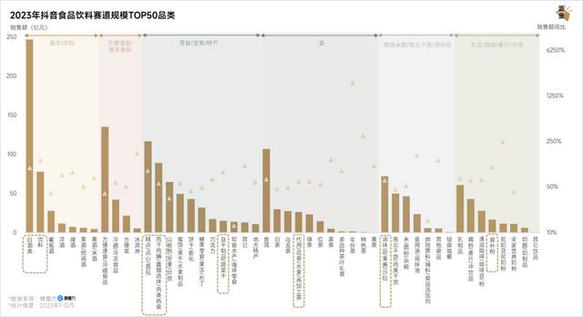 2023 年抖音食品飲料賽道增速 TOP50 品類