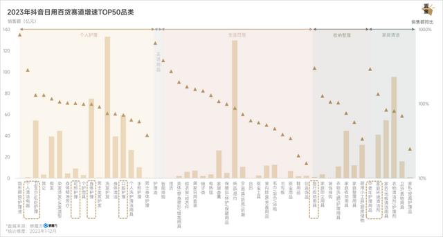 2023 年抖音日用百貨賽道增速 TOP50 品類