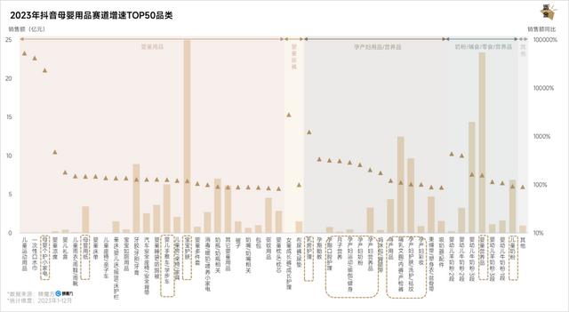 2023 年抖音母嬰用品賽道增速 TOP50 品類