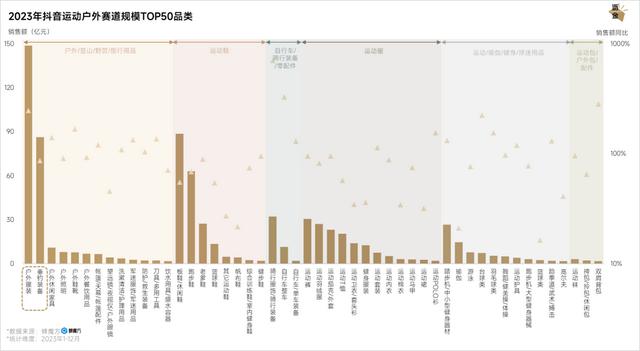 2023 年抖音運動戶外賽道規模 TOP50 品類