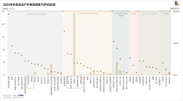 2023 年抖音運動戶外賽道增速 TOP50 品類