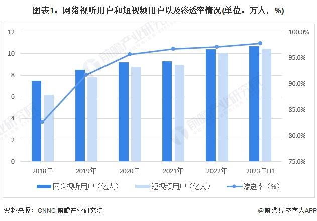 超半數短視頻用戶接觸過短劇,是網絡短劇的主要受眾群體。根據《中國網絡視聽發展研究報告 ( 2023 ) 》數據顯示,截至 2022 年底,我國網絡視聽用戶規模進一步擴大至 10.40 億人,短視頻用戶為 10.12 億人,較 2021 年各類用戶群體對短視頻使用率均有所上升。其中,半年內有 50.4% 的短視頻用戶看過 3 分鐘以內的微短劇、微綜藝和泡面番,用戶規模龐大。2023 上半年滲透率達 98%。