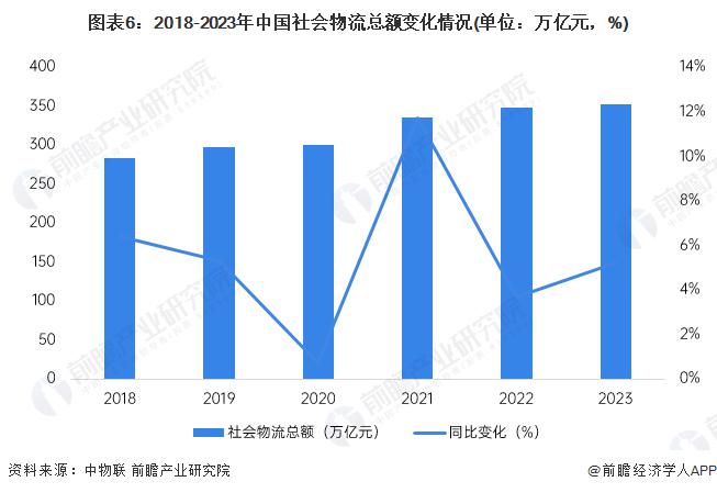 從物流總費用情況來看,中國物流費用總額持續增長。2023 年社會物流總費用 17.8 萬億元,同比增長 2.3%,增速有所下滑。