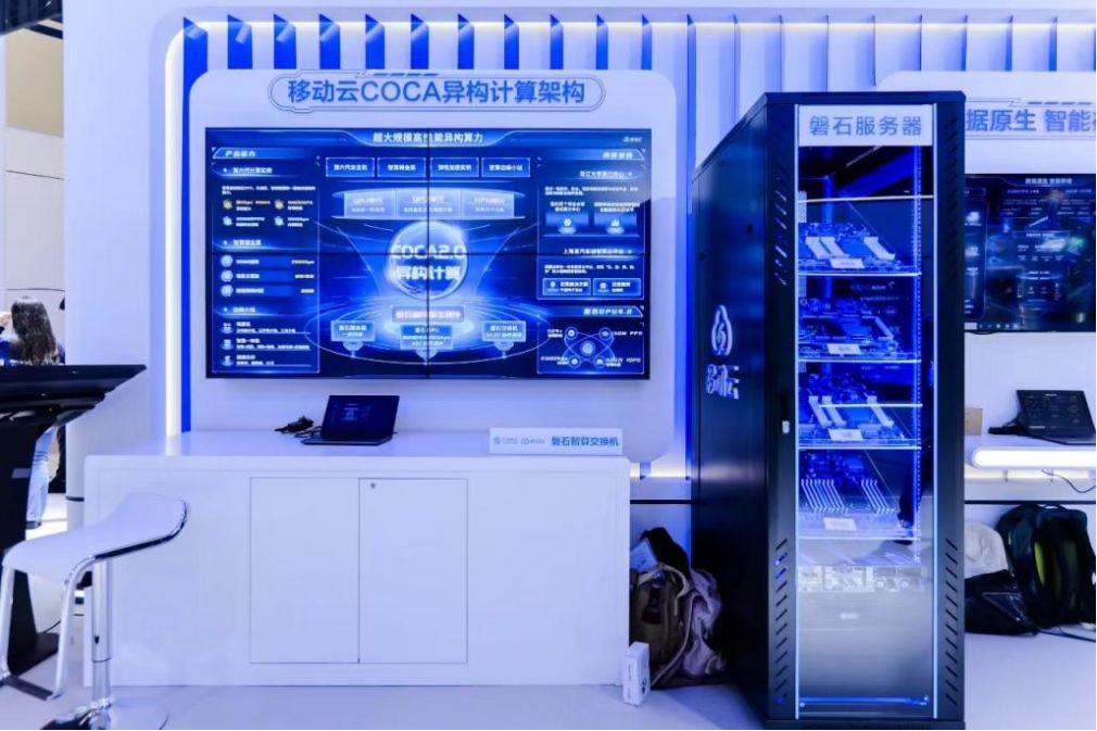 移動云 COCA 2.0 異構計算架構和 " 一機多芯 " 磐石服務器展示 圖源:官方提供