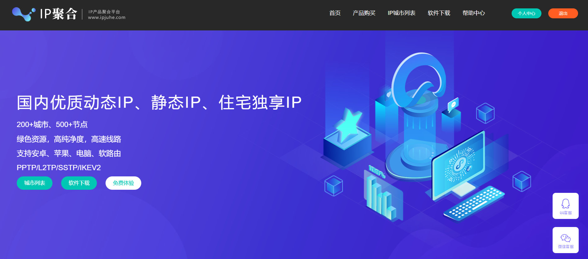 IP 聚合商城(ipjuhe.com)整合了國內最具口碑的 IP 資源。從動態、靜態的PPTP/L2TP/SSTP/IKEV2協議的VPN,到SK5的快速代理ip,帶寬從1M到20M覆蓋各種需求場景,其中星云ip和小貓ip從客服的測試反饋中得知,線路穩定、速度和純凈度非常優秀。目前動態覆蓋6款產品,靜態3款產品。