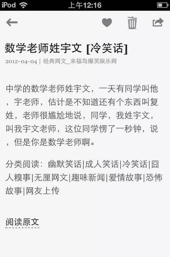 這是因為當時公眾平臺的內容模板用的是我之前做「 微雜志」的模板,而微雜志的模板又是因為做的是博客內容抓取,為了方便用戶回溯去看原網址,也為了尊重原作者,給他帶回去流量,所以在底下加了一個「 閱讀原文」的鏈接入口。