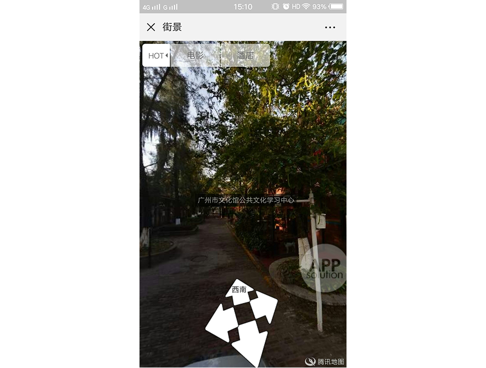 并且,選擇上方的「電影」或「酒店」,就能知道附近最近的電影院和酒店怎么走了。這對出行到一個陌生的地方,找電影院和住處還是非常有幫助的。