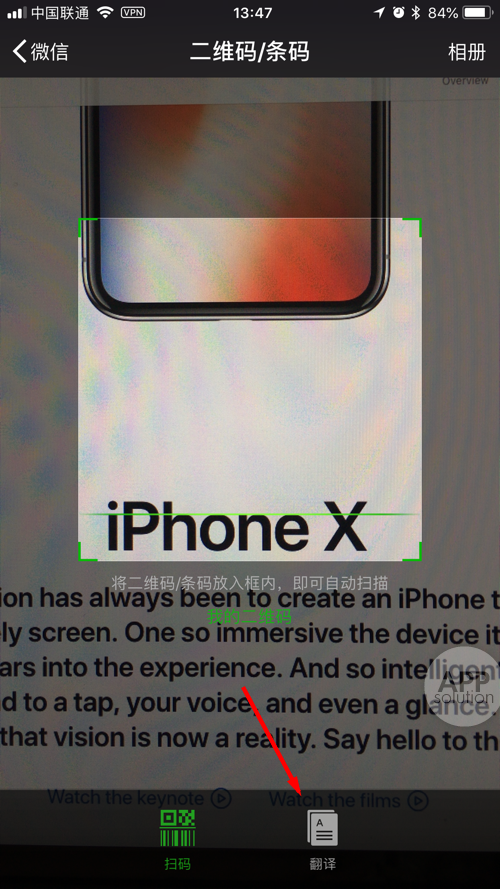 沒錯,微信掃一掃還有翻譯功能,不過目前只支持中英文之間的互翻。