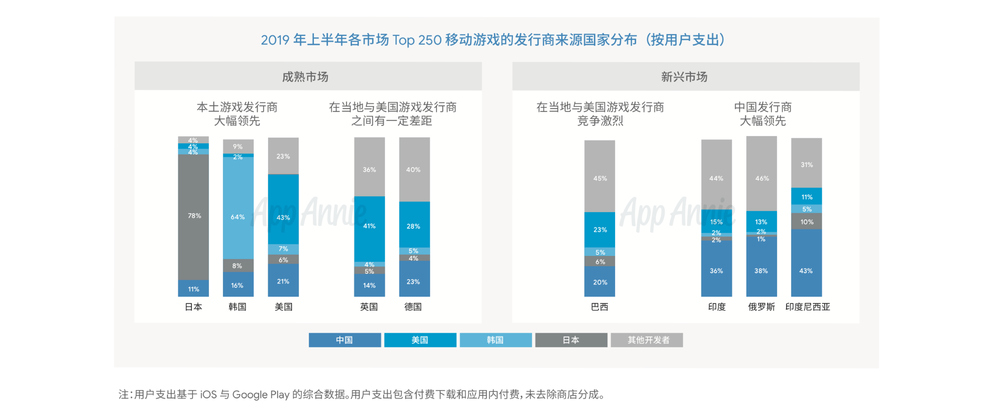 通過觀察比較不難發現,國內發行方在 " 新興市場 " 和 " 成熟市場 " 的競爭關系存在著差異: