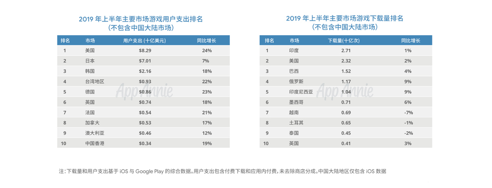 在這里我們回過頭重新看一下前面那張排名,只看左側的支出圖可以發現,成熟市場中的國家不僅支出領先于其他地區,同時普遍保持了約 17%~22% 的增長(除日本 7% 較為落后),是全球營收增長最快的市場。相比東南亞等市場的 " 人口紅利 ",成熟市場中的 " 經濟紅利 " 在收入上體現尤為明顯。