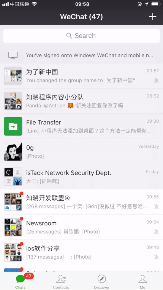 這個改動也引發了很多猜測,微信是不是要在這里放一個新的快捷方式?直到 2018 年 1 月,這個答案才最終揭曉:聊天界面下拉可以喚出小程序。