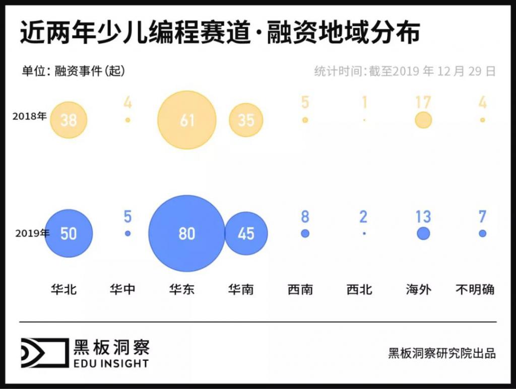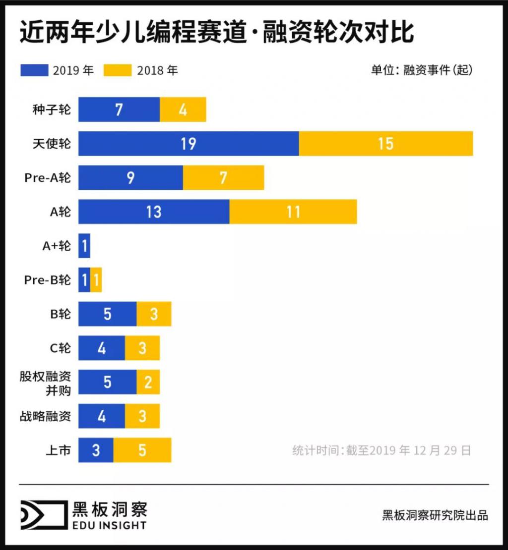 據黑板洞察統計,截止 2019 年年末,已有 70 項少兒編程項目完成了不同程度的投融資或上市。其中不乏核桃編程、極客晨星、編程貓等一眾少兒編程項目,在行業賽道上策馬揚鞭。