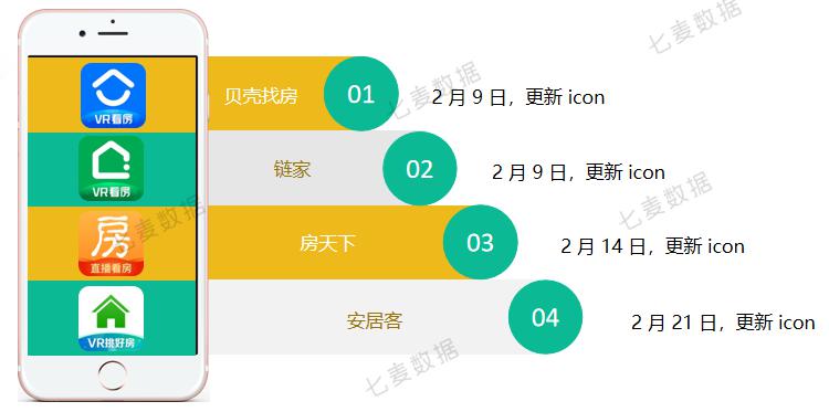 其早在恒大開啟線上買房之前,主打租、住房的「貝殼找房」,開始加碼主推自家的 "VR 看房 " 功能,利用 VR 視角,讓足不出戶即可觀看到房子情況。數(shù)據(jù)顯示,2 月上半旬,用戶共在「貝殼找房」中發(fā)起 309w 多次 "VR 看房 " 功能,同比增長了 213 倍,用戶需求較大。同時,除了「貝殼找房」,「鏈家」、「安居客」、「房天下」等產(chǎn)品,也相繼更新迭代產(chǎn)品,并在產(chǎn)品 icon 上打上 "VR 看房 "、" 直播賣房 " 等標志,讓用戶能直接感受到產(chǎn)品特性。