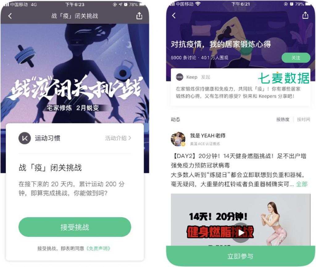 用戶宅家時間過長,也激發(fā)了線上健身活動的需求。擁有線下店和線上平臺的「Keep」,開始有針對性的發(fā)起相關(guān)活動、話題和課程,引導(dǎo)用戶參加。線下用戶轉(zhuǎn)化到線上,滿足用戶健身需求的同時,也讓「Keep」進一步加強在社交領(lǐng)域的布局。目前,「Keep」中 " 對抗疫情,我的居家鍛煉心得 " 話題閱讀量已達到 40.7w,討論度較高。此外,「Keep」不僅邀請李佳琦入駐平臺,上線李佳琦魔鬼瘦小腹計劃,同時還在李佳琦直播間中賣貨,在不到一分鐘內(nèi),15000 個瑜伽墊被搶購一空,跨平臺合作效果顯著。