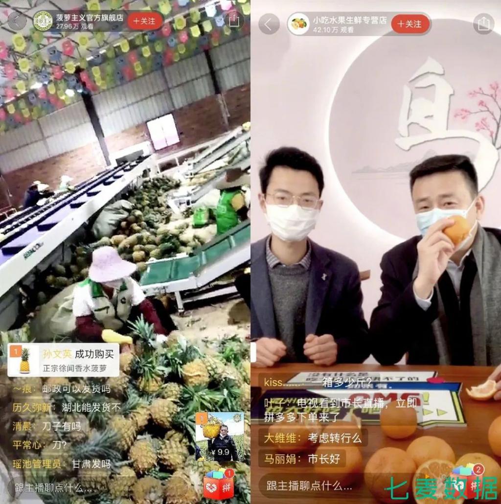 同時,也安排運營人員對商家進行直播教學(xué),或讓商家與平臺主播合作,讓商家能自發(fā)的、直接與用戶面對面銷售。如 2 月 19 日,「拼多多」的助農(nóng)直播間中,兩位縣長在兩個小時內(nèi),累計銷售 50w 斤水果。「淘寶直播」發(fā)起的 " 村播計劃 " 中,李佳琦、烈兒寶貝累計成交額超 1000w,極大程度上緩解了農(nóng)產(chǎn)品滯銷的困境。