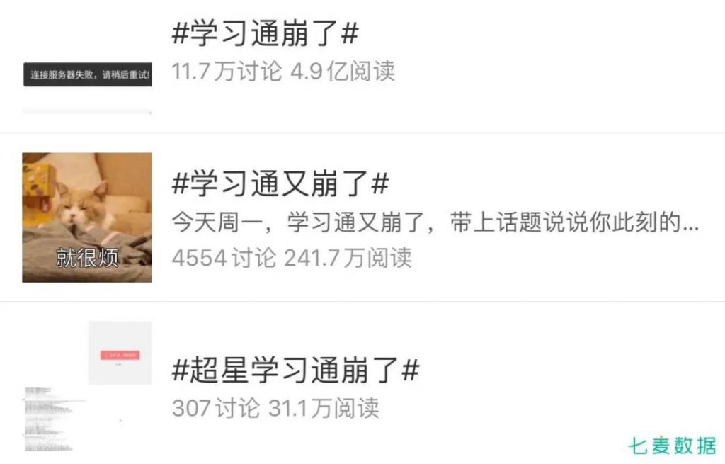 但用戶一時之間大量涌入,服務(wù)器承受不住而崩了,也容易挫傷用戶積極性。其中「超星學(xué)習(xí)通」在被指定為官方學(xué)習(xí)產(chǎn)品后,接連崩了好幾次,導(dǎo)致學(xué)生課表丟失、無法上交作業(yè)等情況,引發(fā)用戶熱議,話題 " 學(xué)習(xí)通崩了 " 閱讀量也高達 4.9 億。在此種情況出現(xiàn)時,建議開發(fā)者先發(fā)通知安撫用戶情緒,然后抓緊時間盡快完善產(chǎn)品不足。