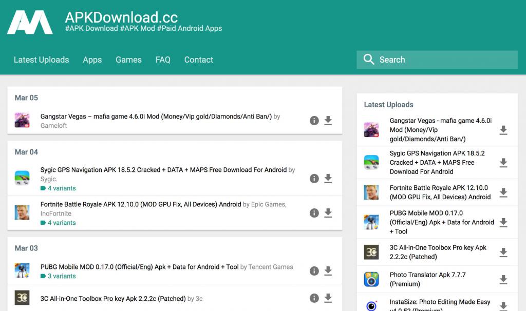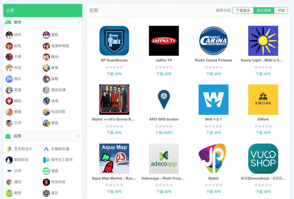 這個網站的主要功能是下載,通過搜索應用名、應用包名,解析 Play 商店的地址來獲取對應應用的信息和下載地址;同時和 APKPure 類似,這也是一個帶有應用市場屬性的網站,它可以按照排行榜、分類等自行查找游戲或者應用,也支持中文。