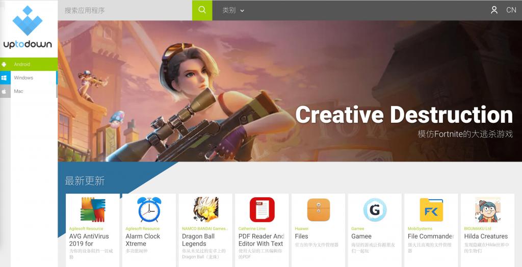 Uptodown 是一個支持下載 Mac、Windows 和 Android 應用網站,支持中文,速雖然不能解析 Google Play 商店的應用,但是本身收錄的應用也算是比較全面,更新也很快,不錯的資源站。