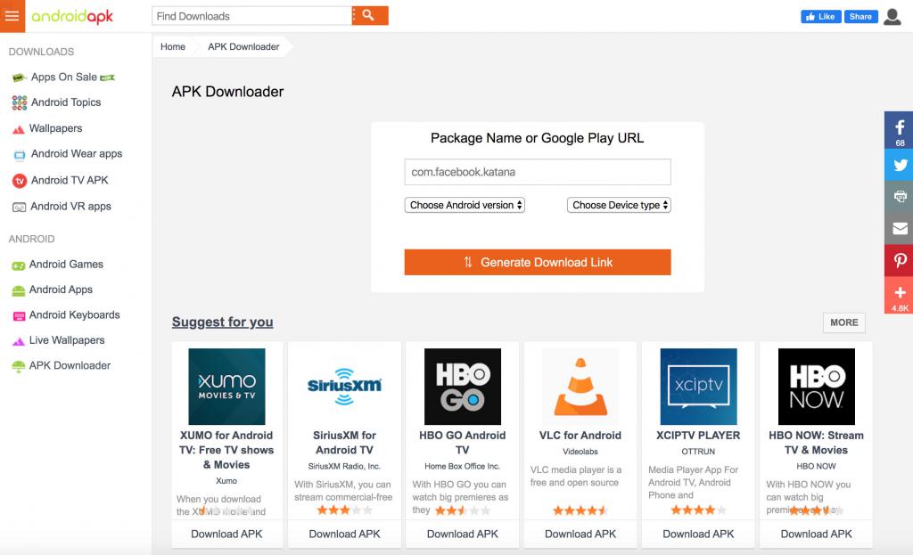 非常不錯的一個網站,簡潔又實用,它可以通過應用包名和 Play 商店鏈接來解析下載 apk,而且可以選擇安卓版本、安卓設備類型,保證下載到的應用可以在你的手機上運行。
