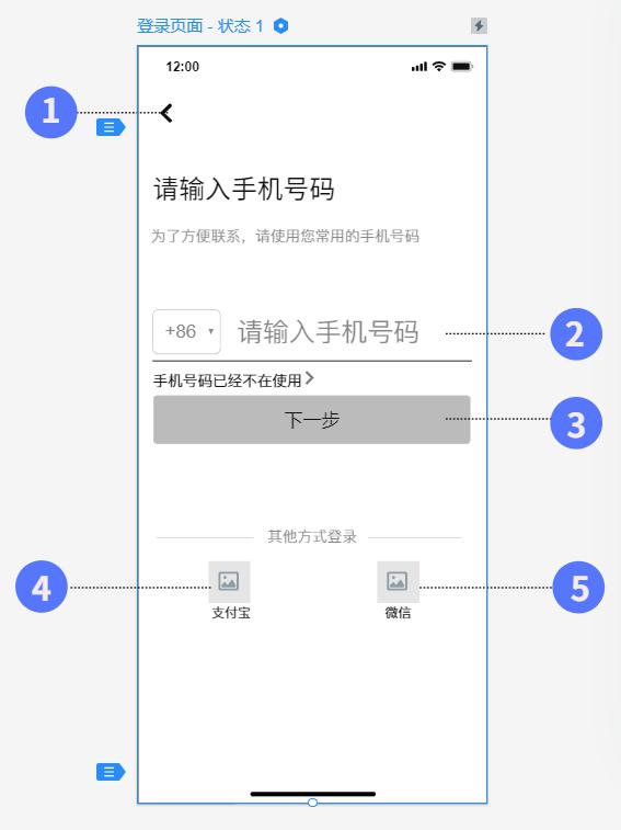 頁面入口:未登錄狀態下,用戶點擊輸入起點、輸入終點、消息、個人中心等界面入口時,自動跳轉入登錄界面