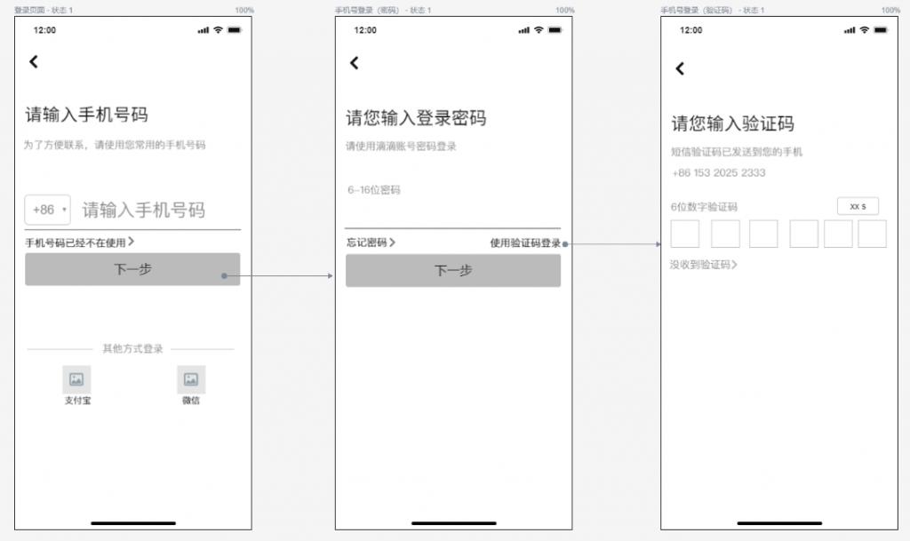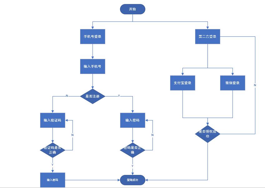 輸入手機號碼正確時,若該手機號已經注冊,進入a密碼登錄頁面;若該手機號碼未注冊,進入B短信驗證碼頁面。