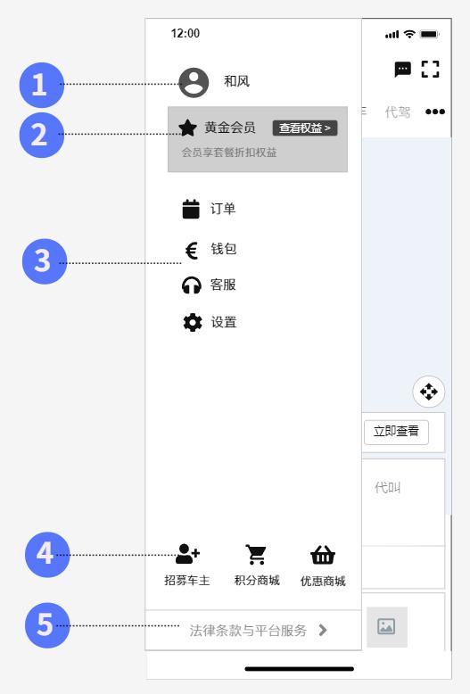 在主頁點擊左上角用戶頭像時進入此界面。頁面由左切入。