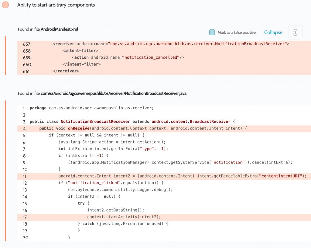 Broadcast Receiver com.ss.android.ugc.awemepushlib.receiver.NotificationBroadcastReceiver 被導(dǎo)出并從第三方 app 接收消息: